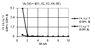 рис. 1 изображены зависимости Vu и Vl при Х1 = Х4 = Х5 = 1, Х2 = 1…10, Х3 = 1…0.1. Из этого примера видно, что