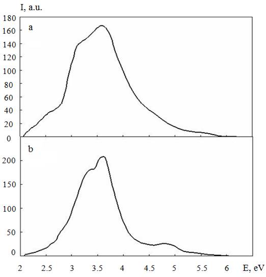 depending on the nature of the activator, emission bands of 3.46 eV and 3.54 eV appear, which