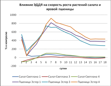семян салата. Наибольшее влияние ЭДДЯ оказывает на рост растений на 9-25 день