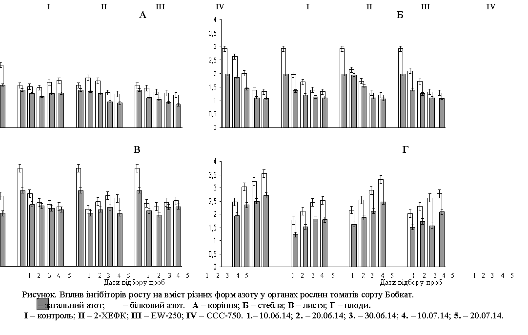та ССС-750 зумовлювало відтік азотовмісних сполук із коренів рослин томатів. Зменшення вмісту загального