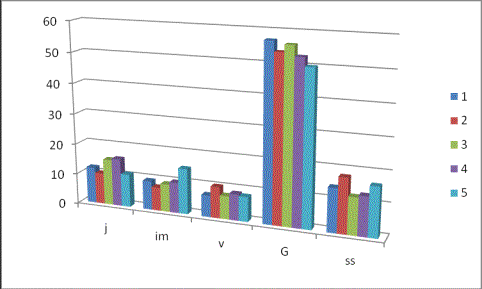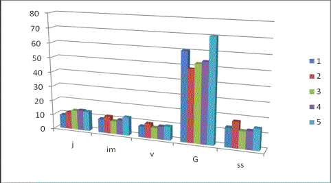 периоде G оказался самый высокий показатель. Самые низкие показатели оказались в v периоде всех популяциях.