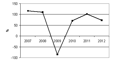кризовий 2009 р. вона мала від’ємне значення, але за 2010-2012 рр.