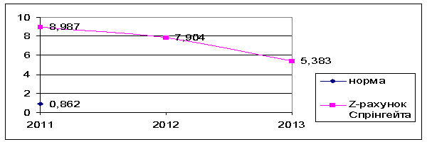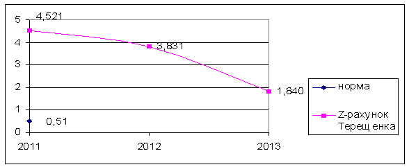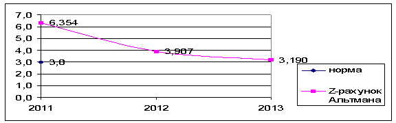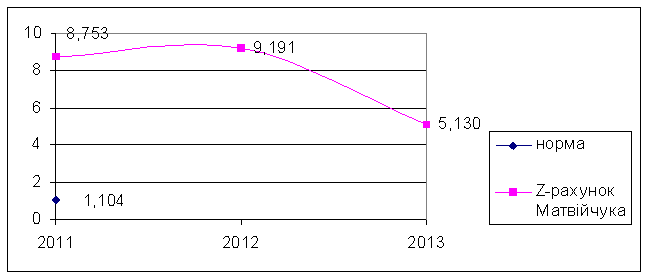 результати засвідчують про відсутність загрози фінансової кризи підприємства в 2011-2013