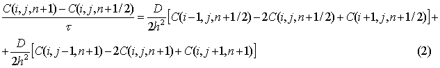 что эквивалентно уравнению диффузии (4), записанному в узле (