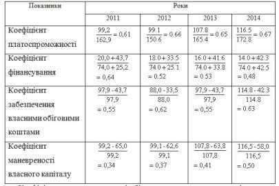 зовнішніх джерел фінансування. Далі розглянемо коефіцієнти платоспроможності