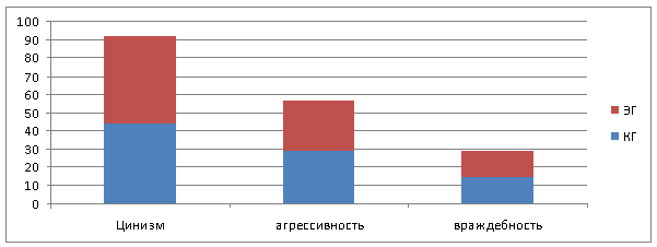 и значимых различий по враждебности в выборке КГ и ЭГ.