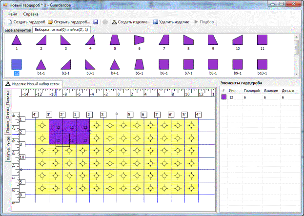 гардероба. В соответствии с требуемым количеством создаются базисные сетки