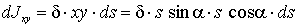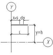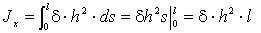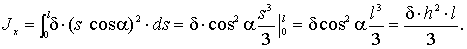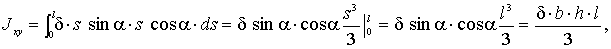 решим две задачи: найдем центробежный Jxy и осевой Jx моменты инерции полосы длиной l и толщиной δ = const,