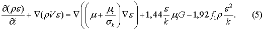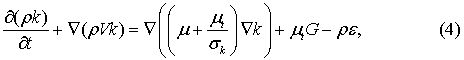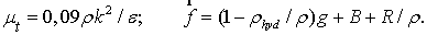 використовувати стандартну k-e модель, яка включає в себе наступні рівняння для k і e: