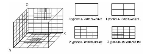 сітка задається вздовж напрямку осей x, y, z, вказавши число розбиття.