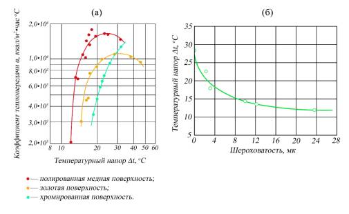 на интенсивность теплоотдачи при кипении; (б) - зависимость температурного напора