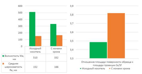 показывают, что воздействие ионов хрома, заметно увеличило волнистость и