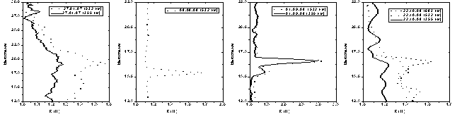 рис. 3 показаны примеры высотных профилей отношения рассеяния R(H),