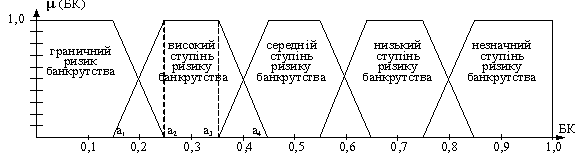 Рис. 1. Функція приналежності (μ(БК)) для змінної «Ризик банкрутства»
