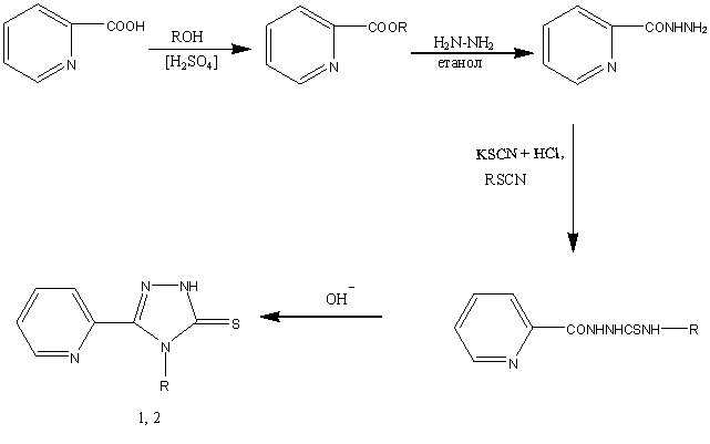 Синтез 5-(піридин-2-іл)-4R-1,2,4-тріазол-3-тіонів