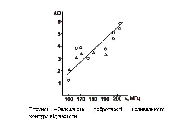 На рис. 1 зображено результати вимірів добротності коливального контура