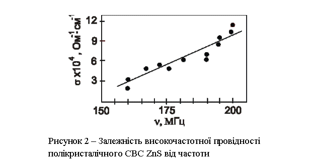 Дослідження високочастотної електропровідності СВС ZnS. При компенсації та самокомпенсації дефектів зразки ZnS, отримані традиційними