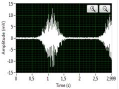 динаміку ЕМГ сигналу на передній панелі та зберігає пари (час : амплітуда) у