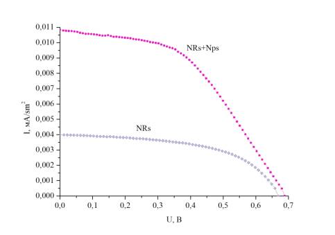 collected by sensibilized dye. Volt-ampere characteristics and efficiency of