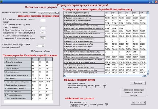 реалізацію операцій, вантажну одиницю, параметри виробництва та економічні