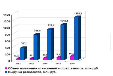 Рис.1. Динамика выручки резидентов областных бизнес-инкубаторов