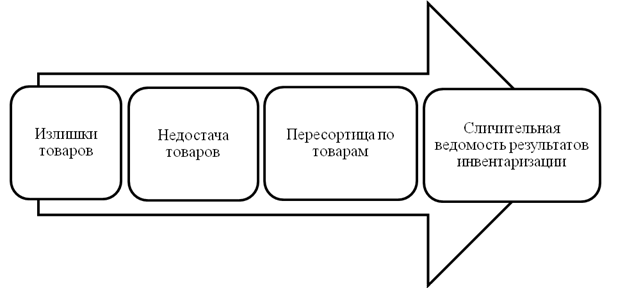 результаты инвентаризации:излишки товаров, недостачи товаров, пересортица