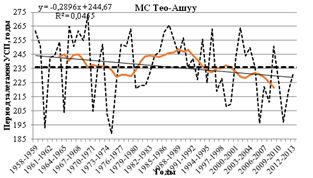 продолжительности залегания снежного покрова на 2-3 дня/10лет. Отмечается