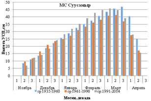 (максимальная разница отмечается в 1-ой декаде апреля и составляет 12 см).