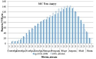 распределении средних декадных высот снежного покрова по данным МС Тео-Ашуу за