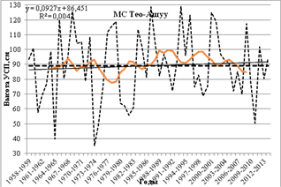 изменения средней высоты устойчивого снежного покрова в целом за весь период