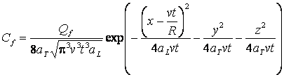 На рисунке 1 приведены некоторые графики, иллюстрирующие процесс рассеивания примеси, рассчитанный по приведенным соотношениям.
