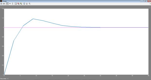 моделирования очевидно, что процесс устанавливается на заданном значении с