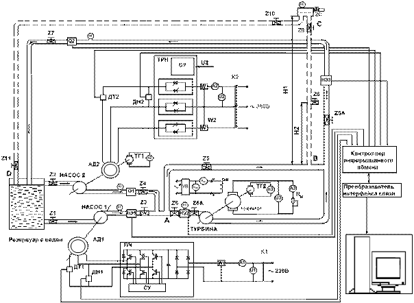 результаты исследований. Для анализа поведения насосных установок при различного рода аварийных режимах использовался лабораторный комплекс, дополненный