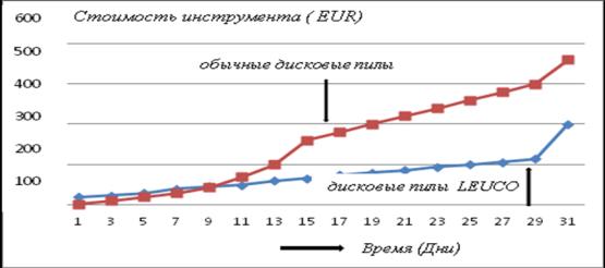 стоимости эксплуатации от времени работы инструмента. Данные на графиках