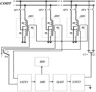 Вторичные обмотки W2 датчиков через ключ SА