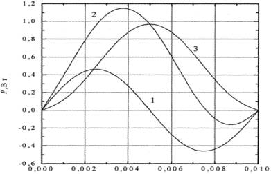 (кривая 1 – реактивная мощность, 2 – полная, 3 - активная)