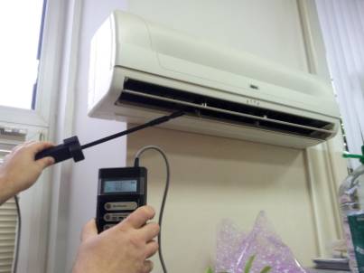воздуха на выходе из кондиционера (м/с);