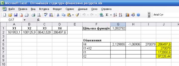 Рис. 5. Звіт за результатами оптимізації структури фінансових ресурсів 2008 рік