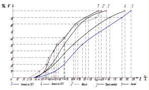 рисунке 2; кривая 5-зимний бензин, кривая 4-летний бензин).