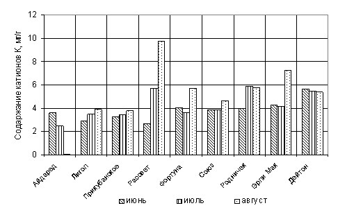 Рисунок 3. Динамика содержания катионов