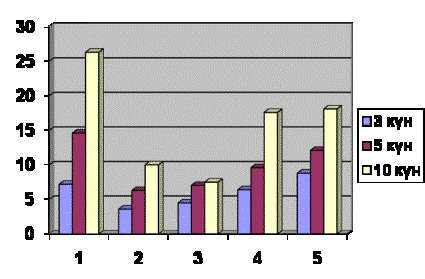 төменгі концентрациясында 3 күнде 8,7±2,7мм, 5 күнде