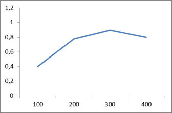 графік залежності (рис. 1) відповідно до сили струму 100,200,300,400A. Звідки випливає, що КВМ збільшується зі збільшенням сили