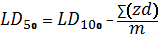 LD50 розраховували за формулою Геддама. Методом найменших квадратів