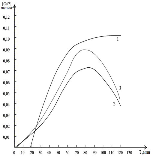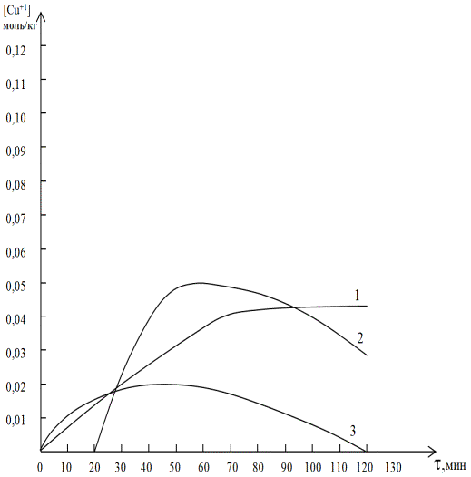 одновалентной меди в зависимости от времени