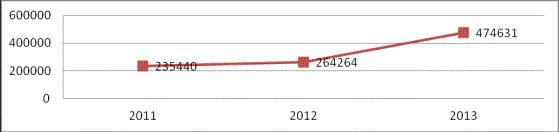 на 101,6% більше ніж у 2011 році, та на 79,6% ніж у 2012 році. Даний факт можна