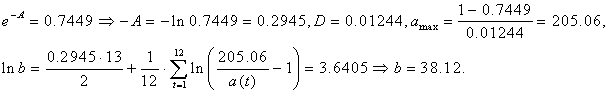 а потім визначають параметр b. Для перетворення логістичної функції визначається різниця між