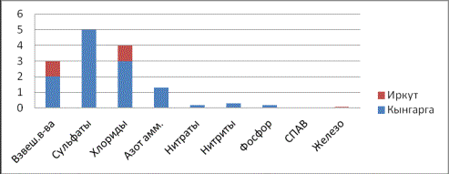 Рисунок 2 – Распределение загрязняющих веществ в бассейне р. Иркут