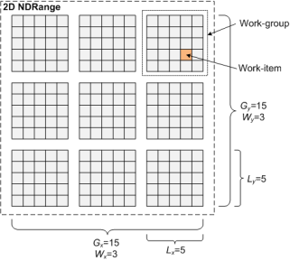An illustrative example of a two-dimensional NDRange, shown in Figure 2,