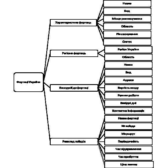 інформації, що міститься у таблицях бази даних «Фортеці України» створеної