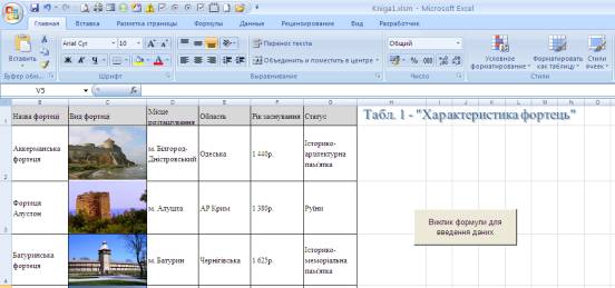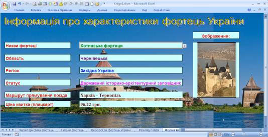 засобами Excel таблиці «Характеристика фортець», що входить до складу реляційної бази